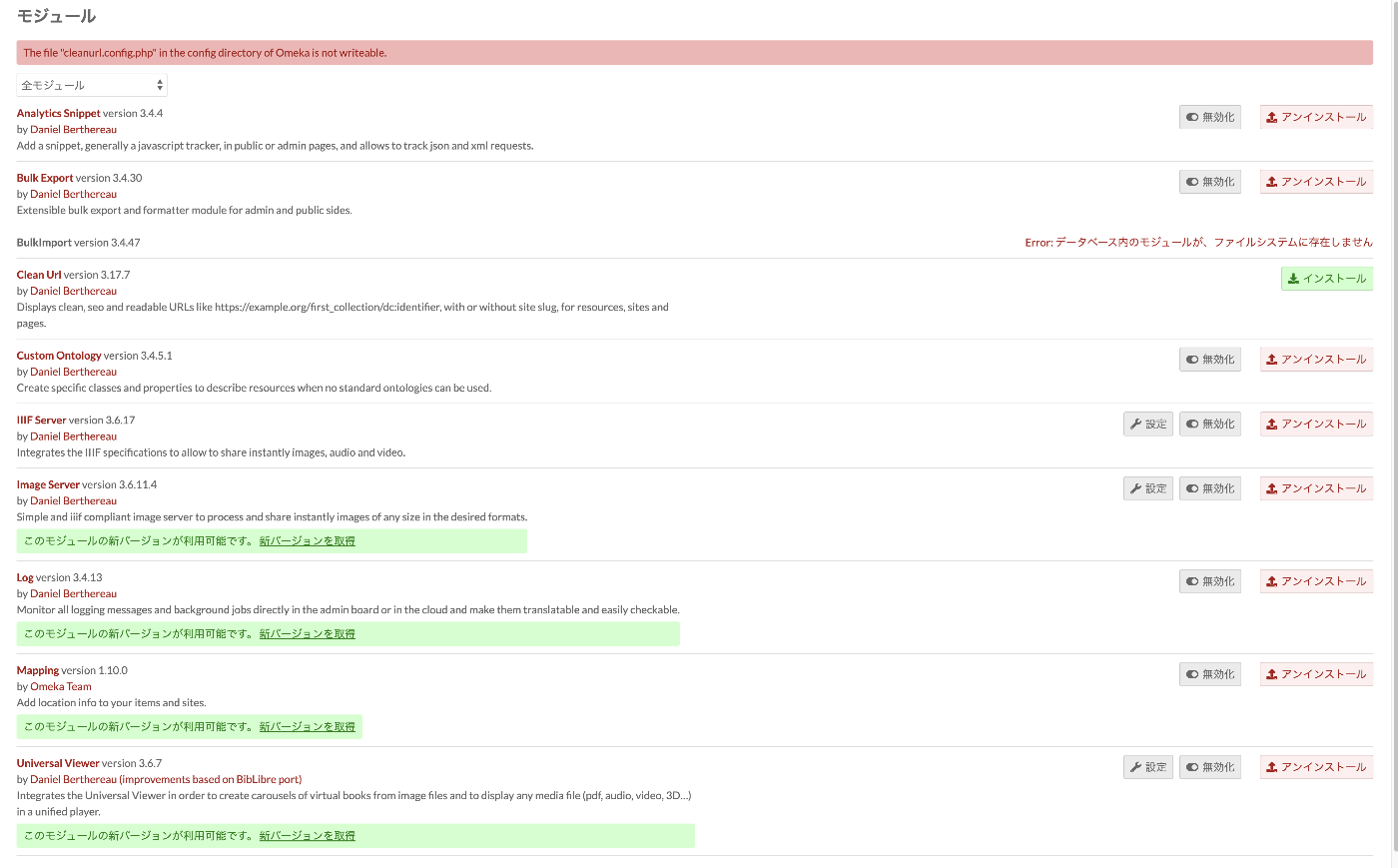 以下の環境で構築したOmeka SにClean Urlモジュールをインストールしようとしたところ、