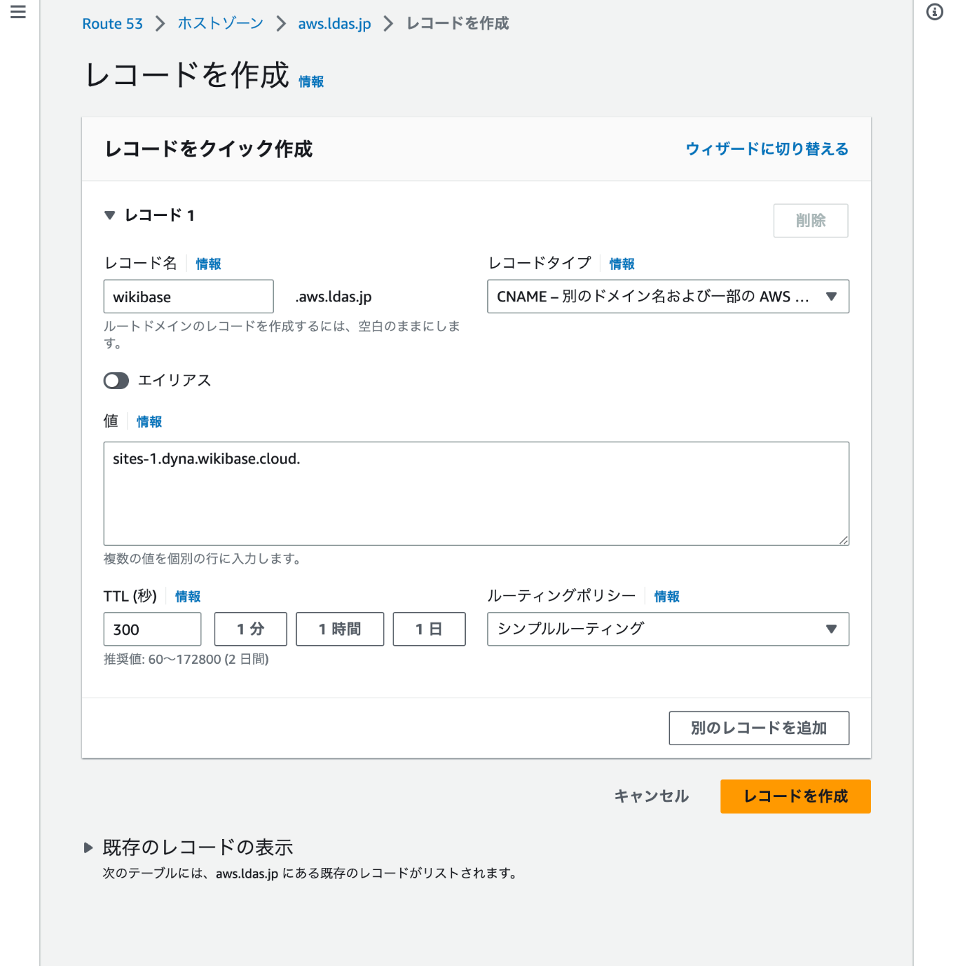 独自のドメインを割り当てられるようでしたので、wikibase.aws.ldas.jpを入力しました。