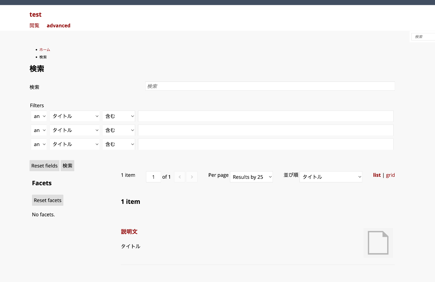 デフォルトの設定では、以下のように、「見出し」にタイトル(dcterms:title)、「Body」に説明文(dcterms:description)が表示されます。