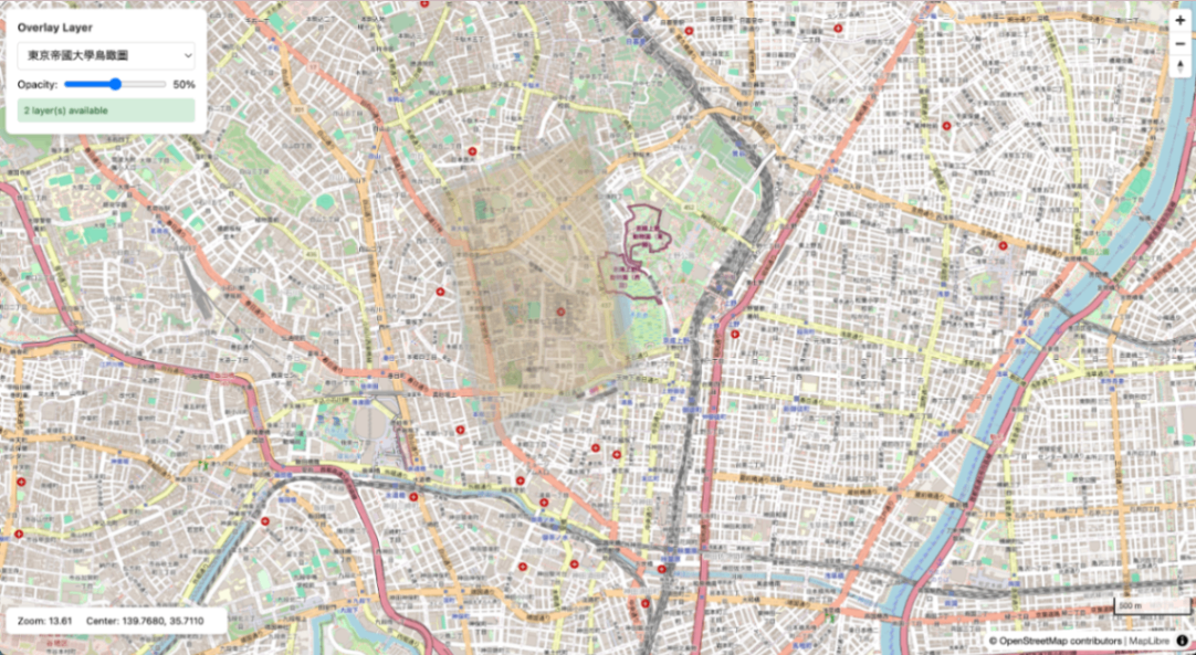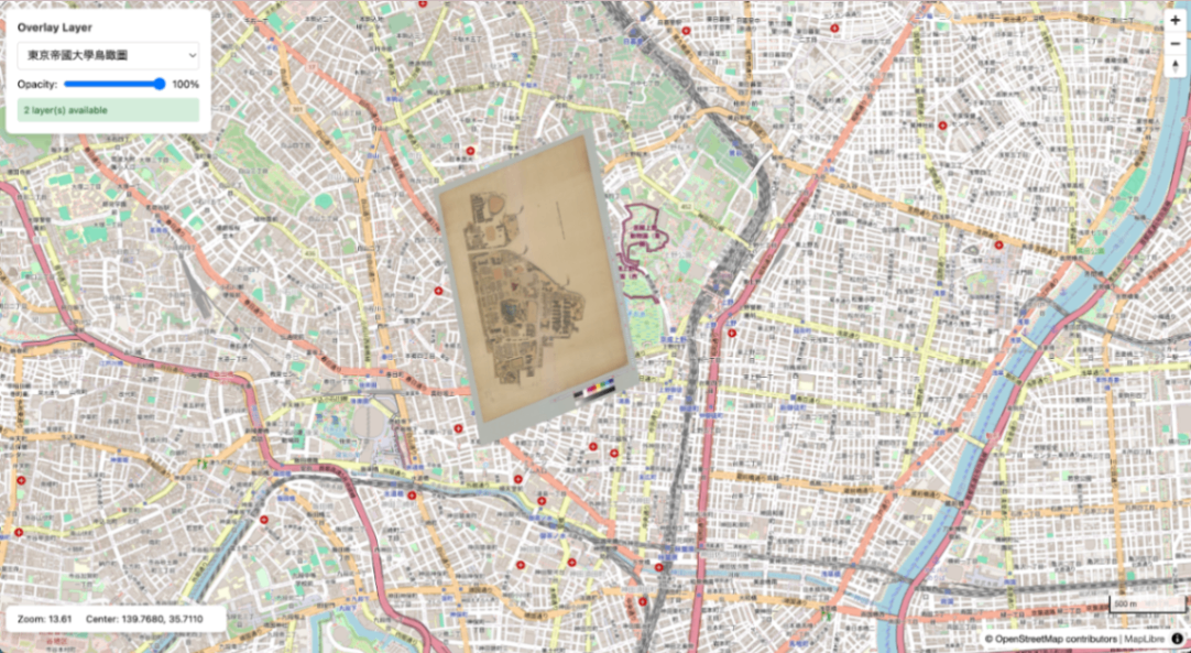 OSM上に東京大学鳥瞰図をオーバーレイ表示