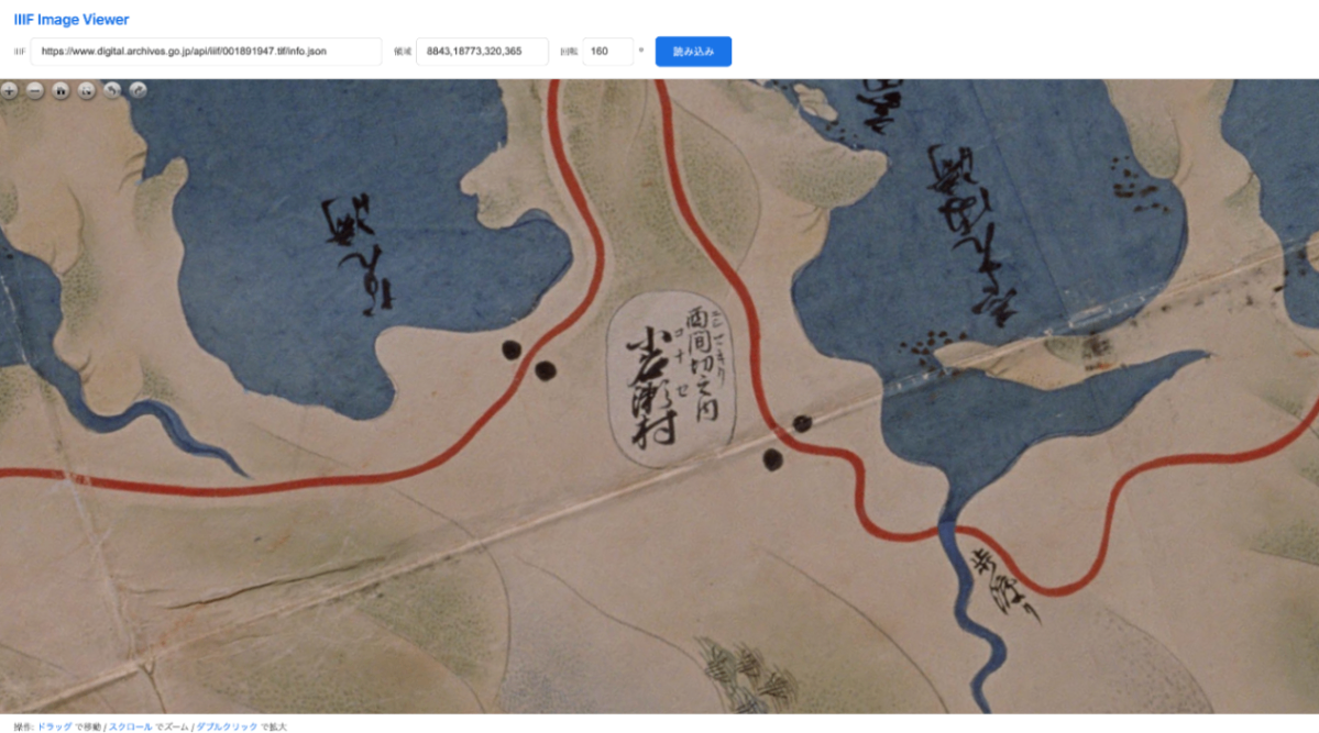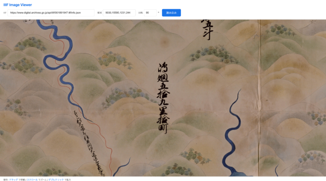 画像サーバーが回転に対応していない場合でも、IIIF Image Viewerを使用することで、クライアント側で回転補正された画像を確認できます。このビューアはブラウザ上で画像を回転させるため、サーバー側の回転機能に依存しません。