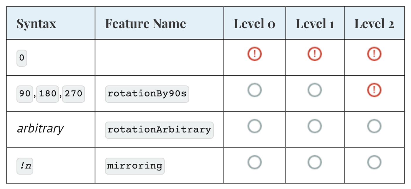 | Level 2 | 0, 90, 180, 270度に対応(任意角度はオプション) |