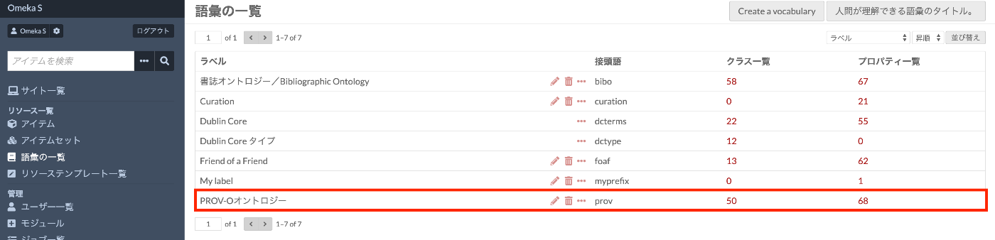 登録が完了すると、語彙一覧にPROV-Oオントロジーが表示されます。
