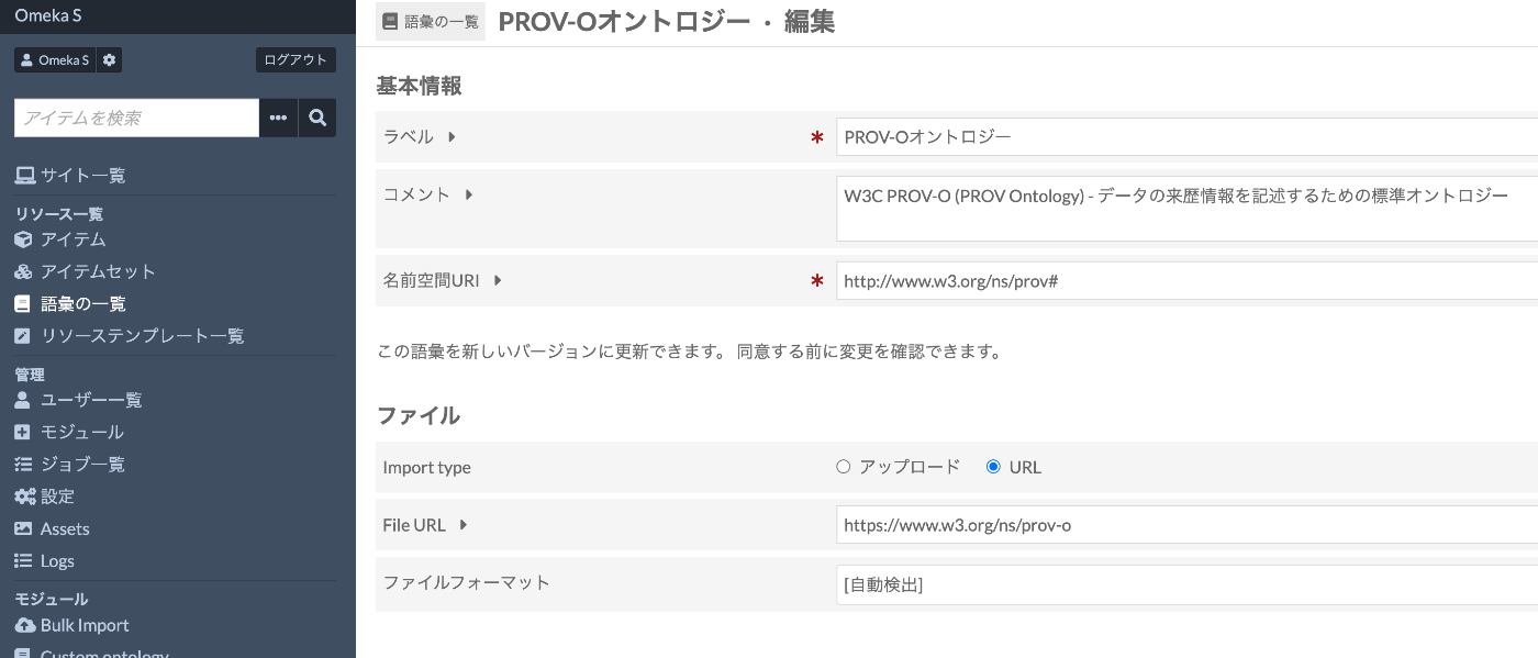 Omeka Sでデジタルアーカイブを構築する際、メタデータの記述に標準的な語彙を使用することで、データの相互運用性が向上します。今回は、W3Cが策定したPROV-O(PROV Ontology)をOmeka Sに登録する手順を解説します。