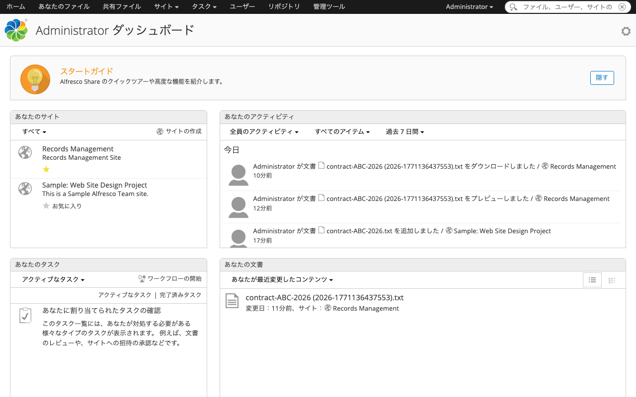 本記事では、Alfresco Governance Services Community Edition(以下AGS)の最新版(25.3.0)をDockerで起動し、REST APIを使ってレコード管理の一連のライフサイクルを体験します。