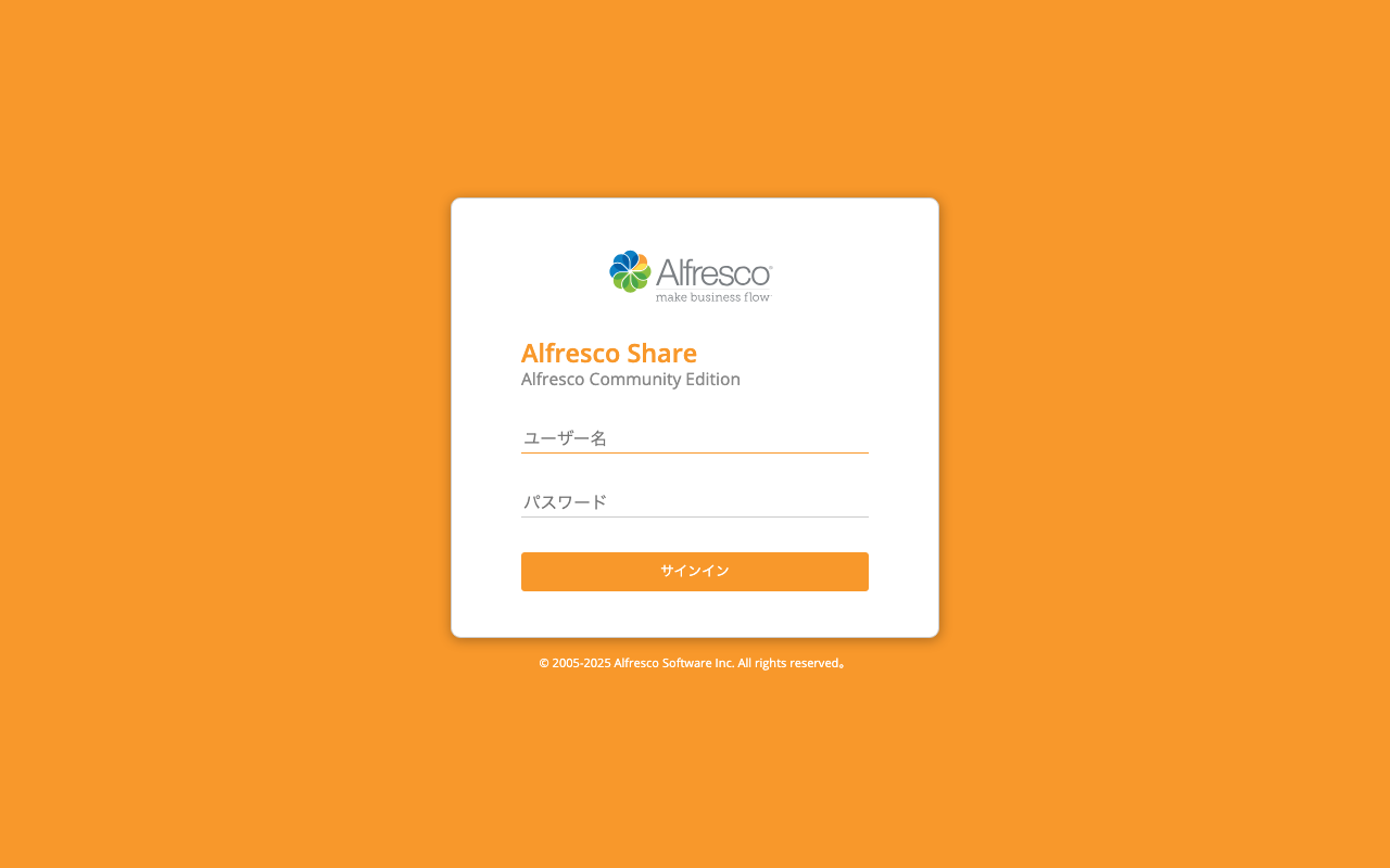 Alfresco Shareのログイン画面が表示されます。