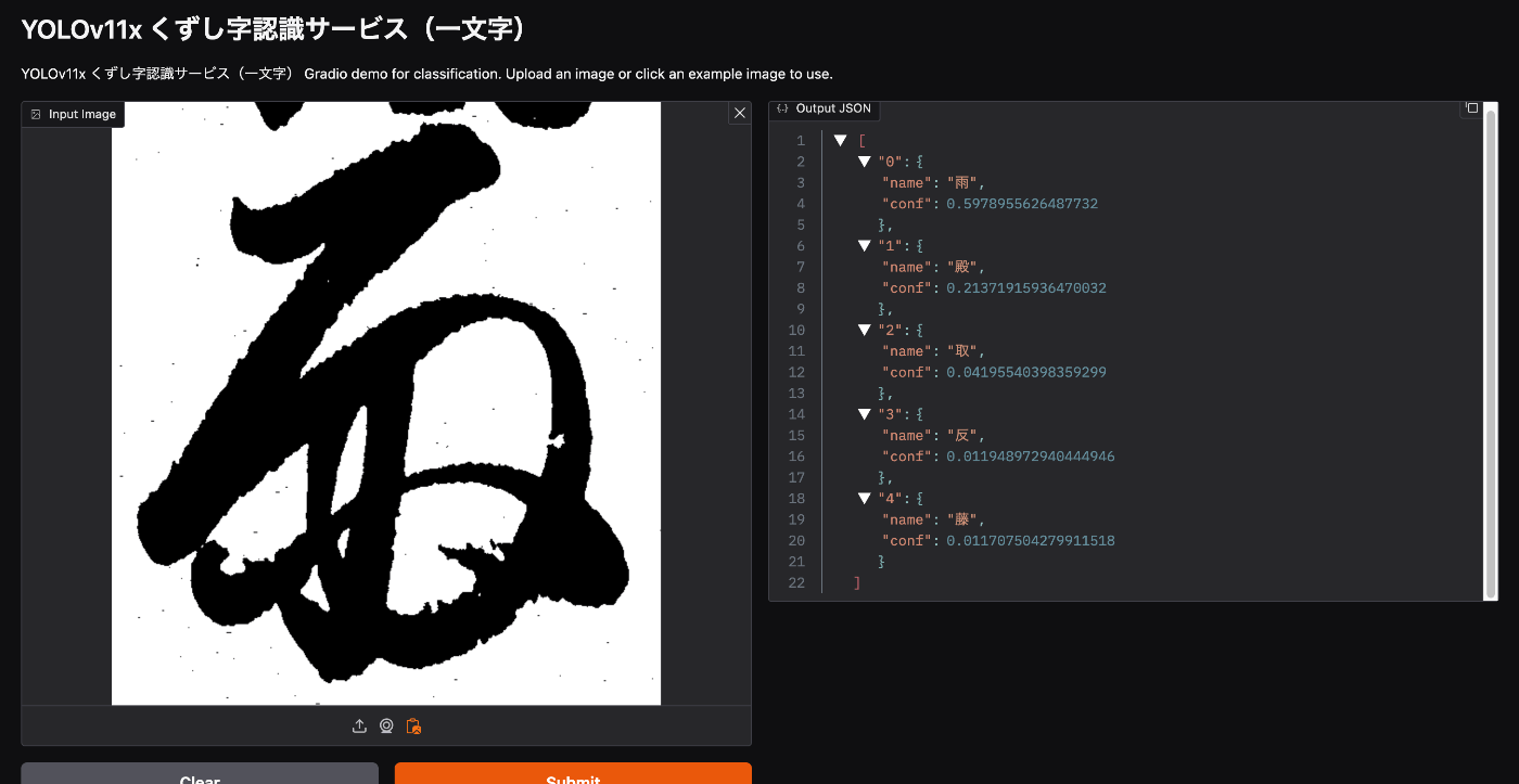 https://huggingface.co/spaces/nakamura196/yolov11x-cls-codh-char