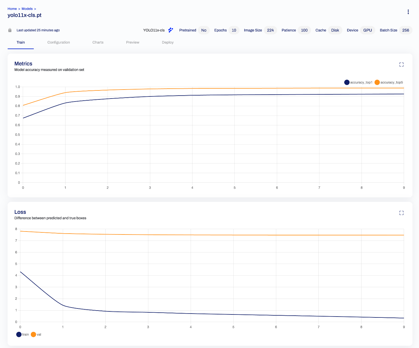 「Ultralytics HUB: View model at 」のURLを参照することで、学習経過を確認することができました。