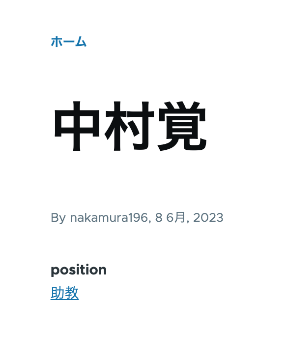 以下のように、positionフィールドにタクソノミー「助教」を付与しています。