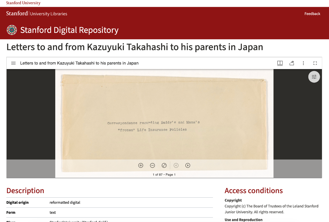 埋め込み方式は、Stanford University Libraries の Stanford Digital Repository を参考にしています。書誌情報の上部にビューアを埋め込み、メタデータと画像を同一ページで閲覧できるようにしています。