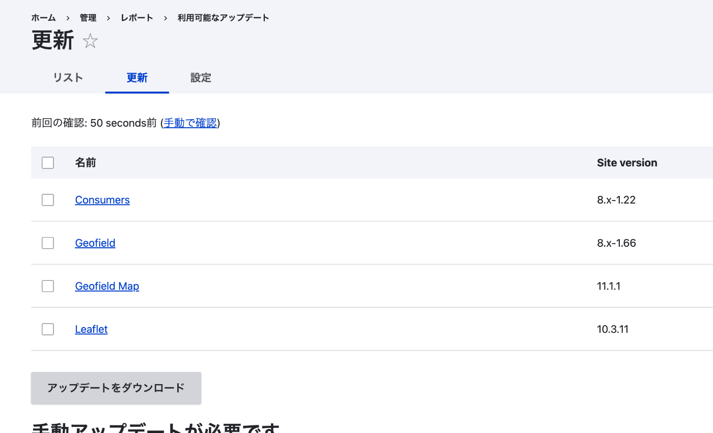 「レポート > 利用可能なアップデート」を見ると、以下のモジュールに更新があった。