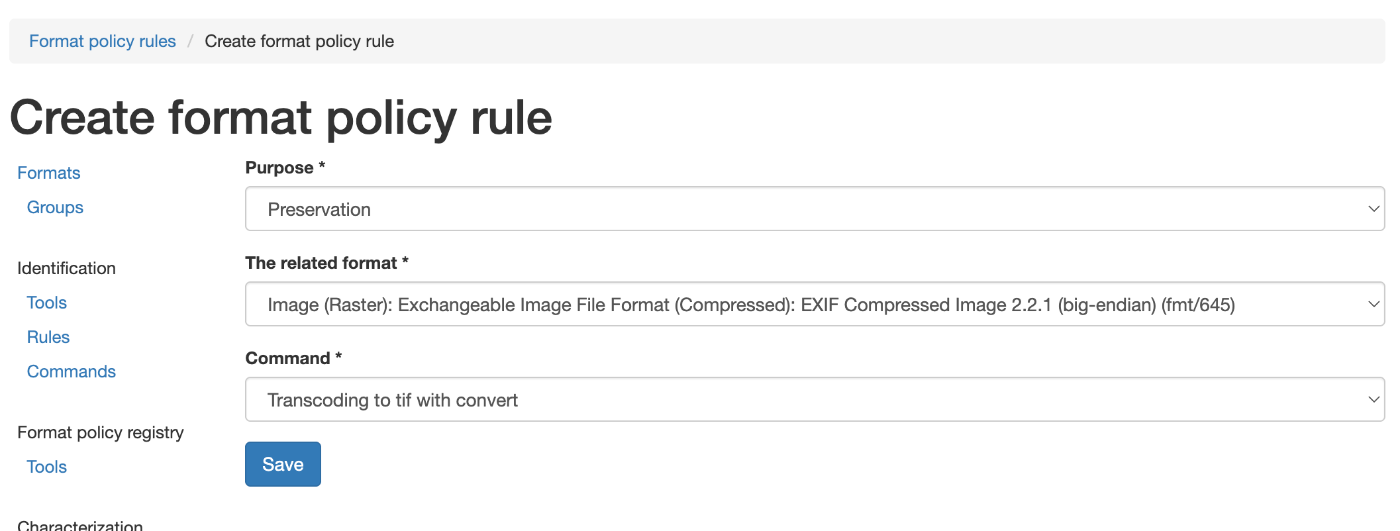 拡張子が.jpgである画像をArchivematicaに投入した際、以下のようにFormatがJPEGのものに対してtifファイルを保存用に作成するルールを用意しているにもかかわらず、tifファイルが作成されないことがありました。